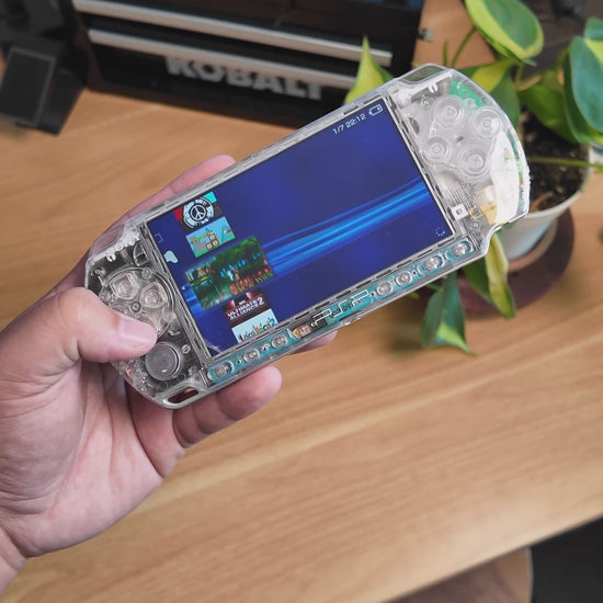 The Clear PSP 3000 is a modded handheld gaming device that comes with a 128gb storage and a variety of retro emulators. With a clear design, it also includes a charger and instructions for easy setup. Enjoy a vast collection of games on the go.